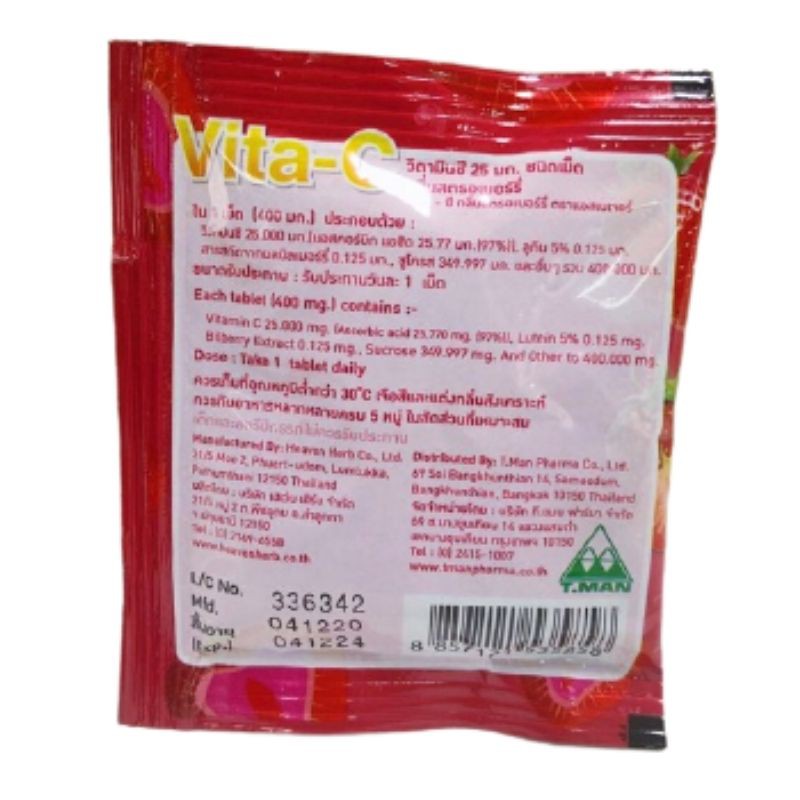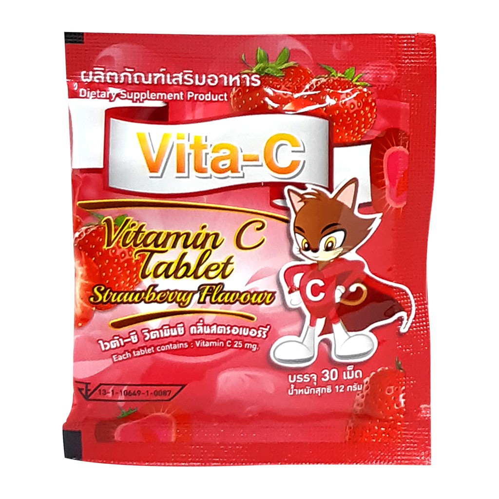 Vita-C Vitamin C Tablet Strawberry Flavors 30 Tablets ไวต้า-ซี วิตามินซี กลิ่นสตรอเบอรี่ 30 เม็ด