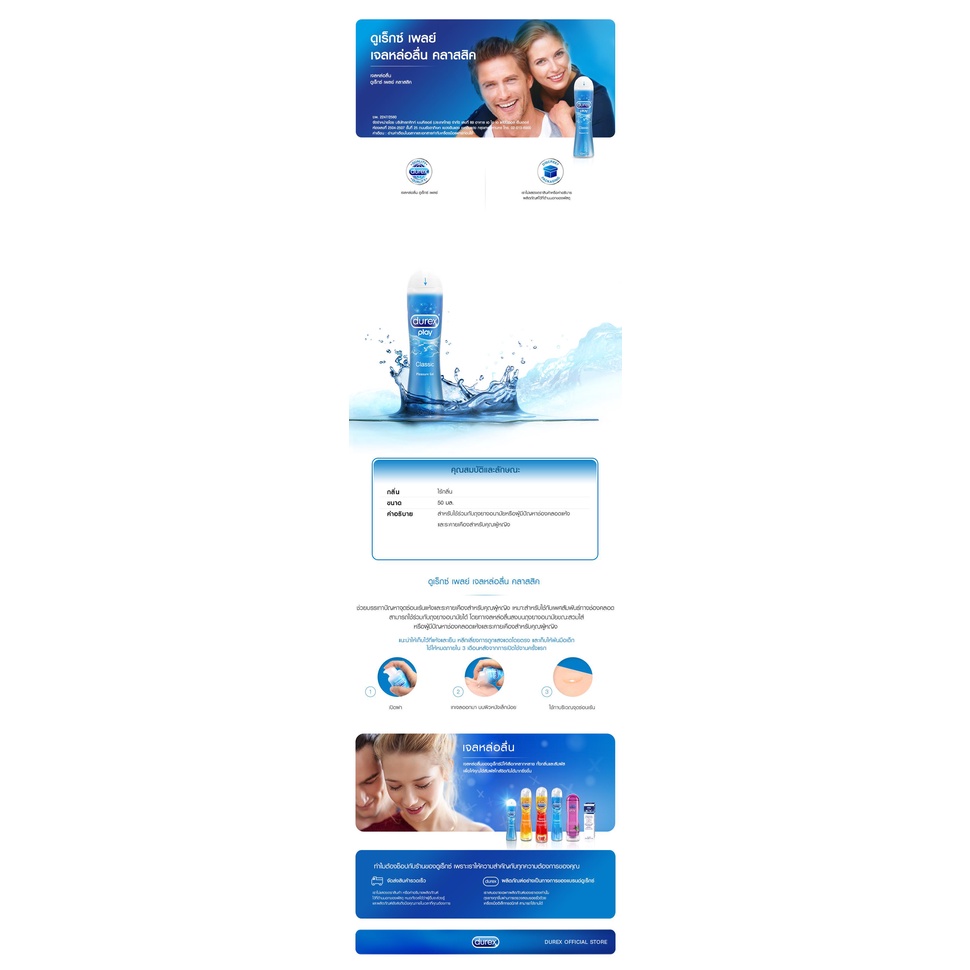 Durex เจลหล่อลื่น เพลย์ คลาสสิค 50 มล. รวม 2 ขวด