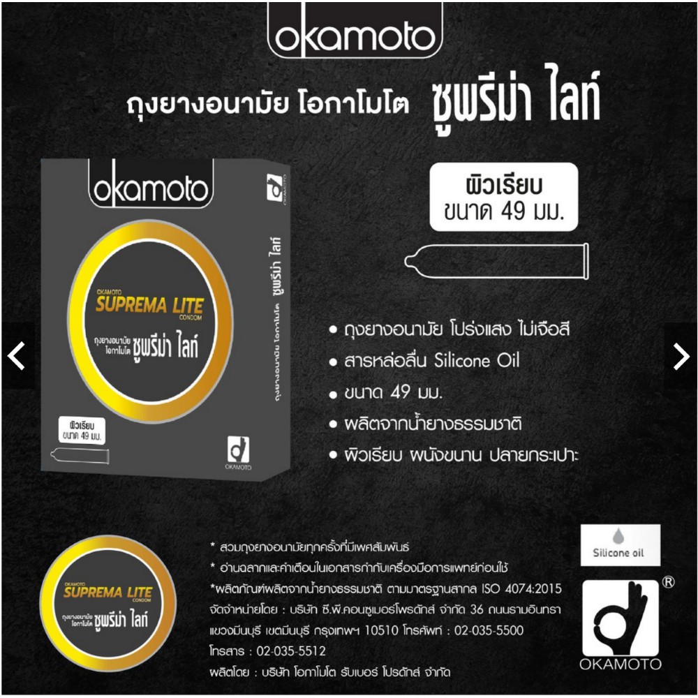 Okamoto ถุงยางอนามัย โอกาโมโต ซูพรีม่า ไลท์ 2 ชิ้น