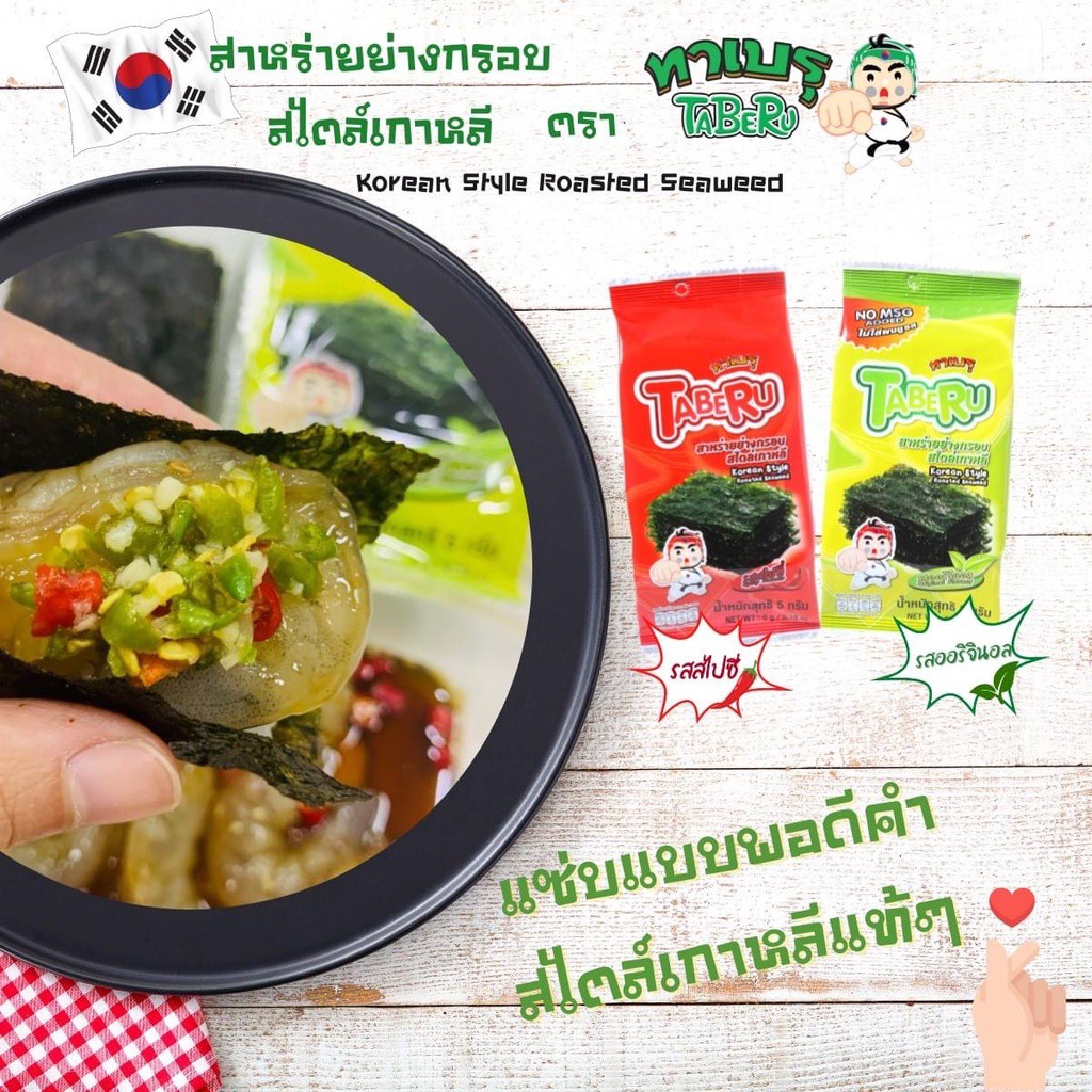 Taberu ทาเบรุ สาหร่ายย่างกรอบสไตล์เกาหลี 5 กรัม แพ็ค 3 (เลือกรสได้)