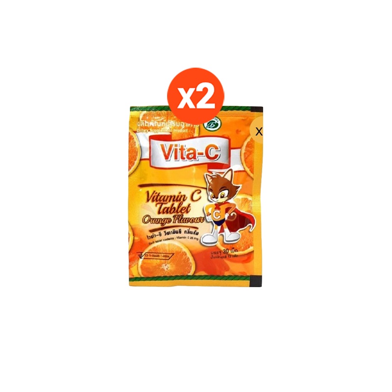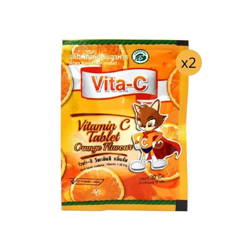 [2 ซอง] Vita-C Vitamin C Tablet Orange Flavors 30 Tablets ไวต้า-ซี วิตามินซี กลิ่นส้ม 30 เม็ด