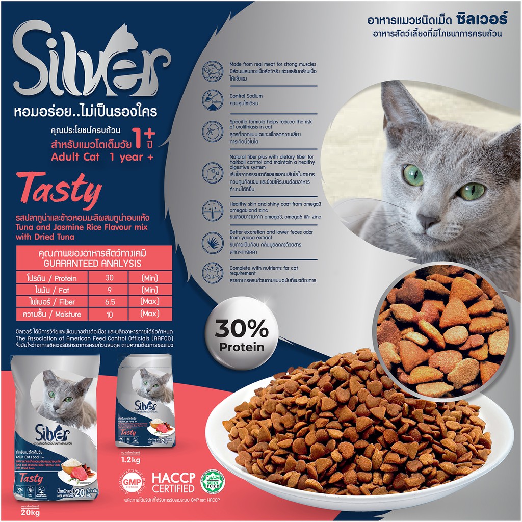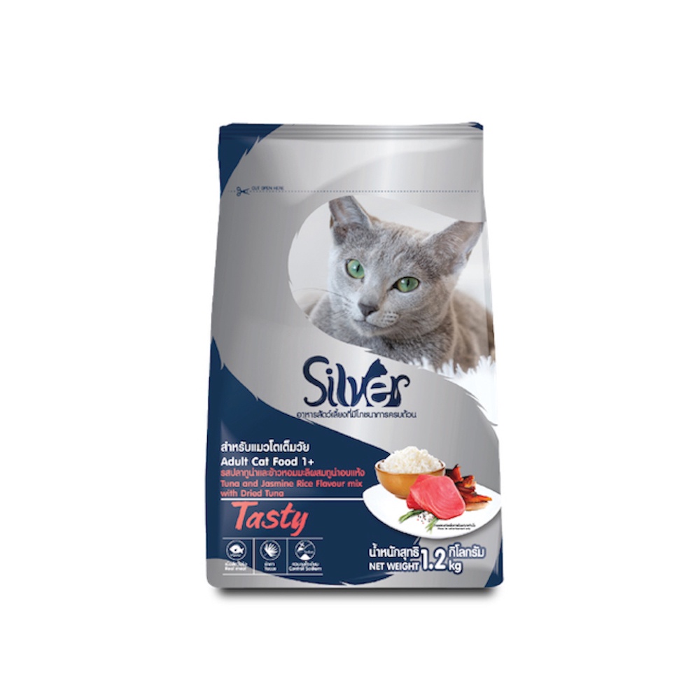 Silver ซิลเวอร์ อาหารเม็ดสำหรับแมว ขนาด 1.2 Kg. (เลือกรสได้)