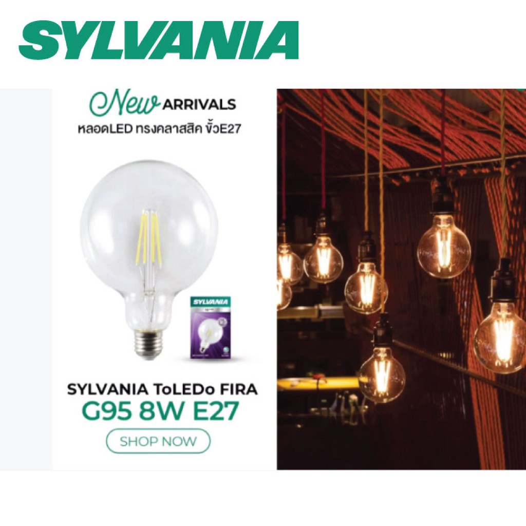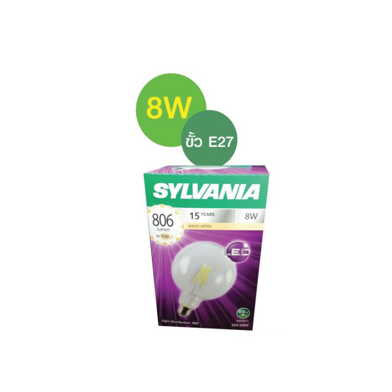 SYLVANIA หลอดไฟวินเทจ Filament ฟิลาเมนต์ ทรงเอดิสัน รุ่น ToLEDo FIRA G95 8W E27 แสงวอร์มไวท์