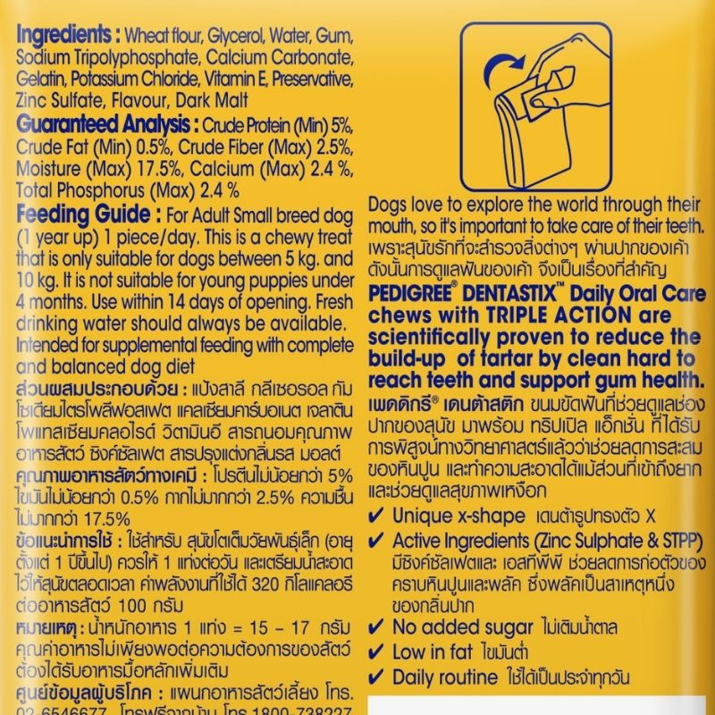 Pedigree เพดดิกรี ขนมขัดฟัน เดนต้าสติ๊ก สำหรับสุนัขพันธุ์เล็ก 3 แท่ง ขนาด 45 กรัม