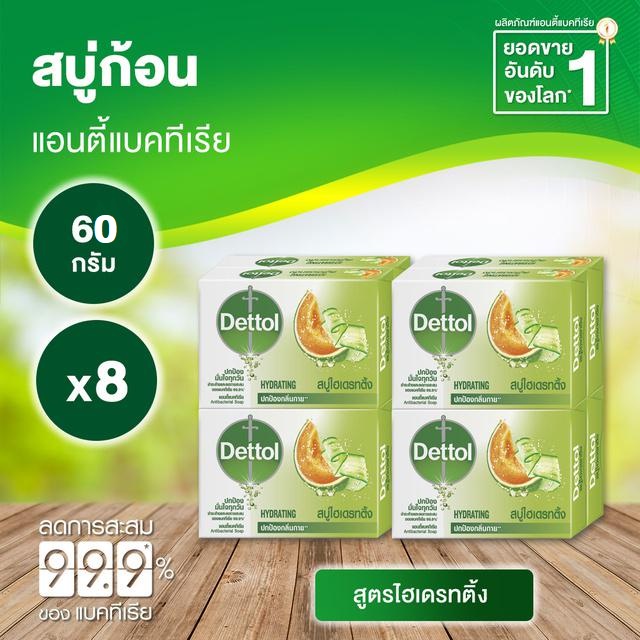 เดทตอล สบู่ก้อนแอนตี้แบคทีเรีย สูตร ไฮเดรทติ้ง 60 กรัม (8 ก้อน)