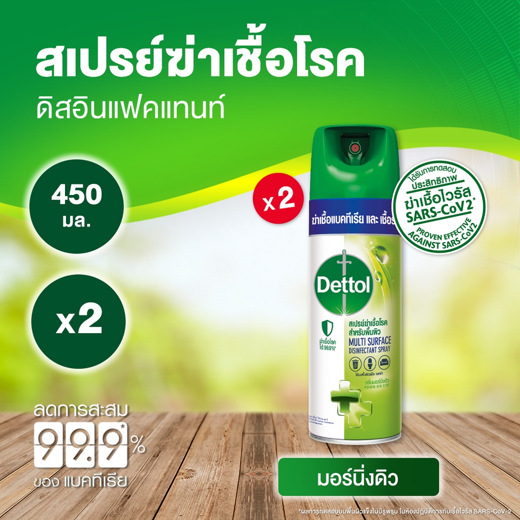 เดทตอล สเปรย์ฆ่าเชื้อโรค ดิสอินเฟคแทนท์ กลิ่นมอร์นิ่งดิว 450มล. (2 ขวด)
