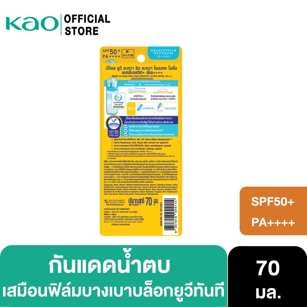 BBIORE UV AQUA RICH AQUA PROTECT LOTION SPF50+ PA++++ 70 ml.