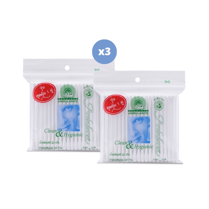 [ซื้อ3แถม3][6 ชิ้น] Ambulance รถพยาบาลสำลีก้าน100ก้าน (แพ็คคู่) ขนาด 22 กรัม (ขายดี)