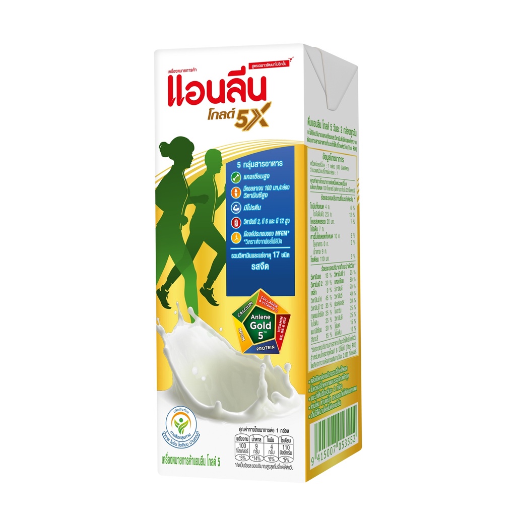 [ซื้อ 1 แถม 1] Anlene Gold 5 แอนลีน โกลด์ 5 นมกล่องยูเอชทีแคลเซียมสูง รสจืด 3x180 มล