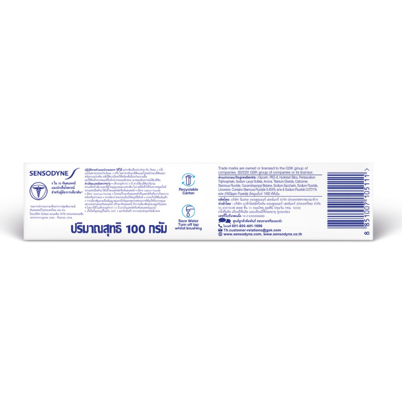 SENSODYNE SENSITIVITY & GUM TOOTHPASTE 100G เซ็นโซดายน์ เซ็นซิทิวิตี้ & กัม ยาสีฟัน 100ก.