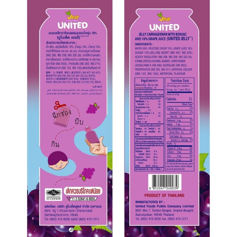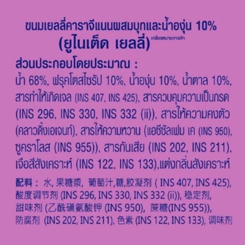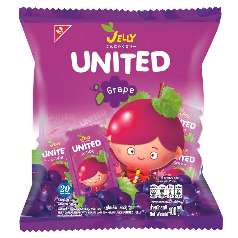 United Jelly ยูไนเต็ด เจลลี่ รสองุ่น 400g. 1ถุง บรรจุ20