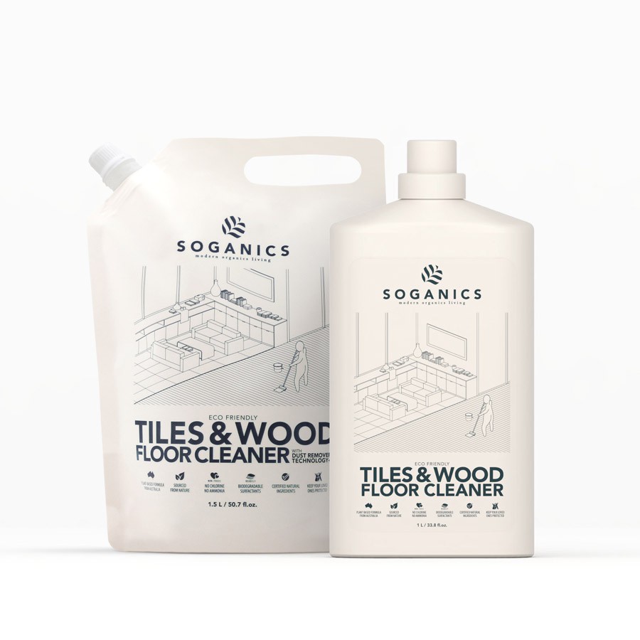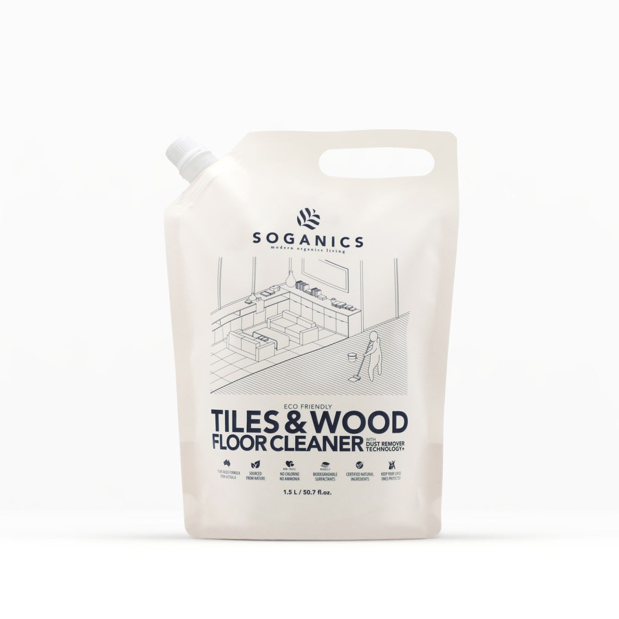SOGANICS Tiles&Wood Floor Cleaner Refill โซแกนิคส์ น้ำยาถูพื้น รีฟิล (ถุงเติม) 1.5L