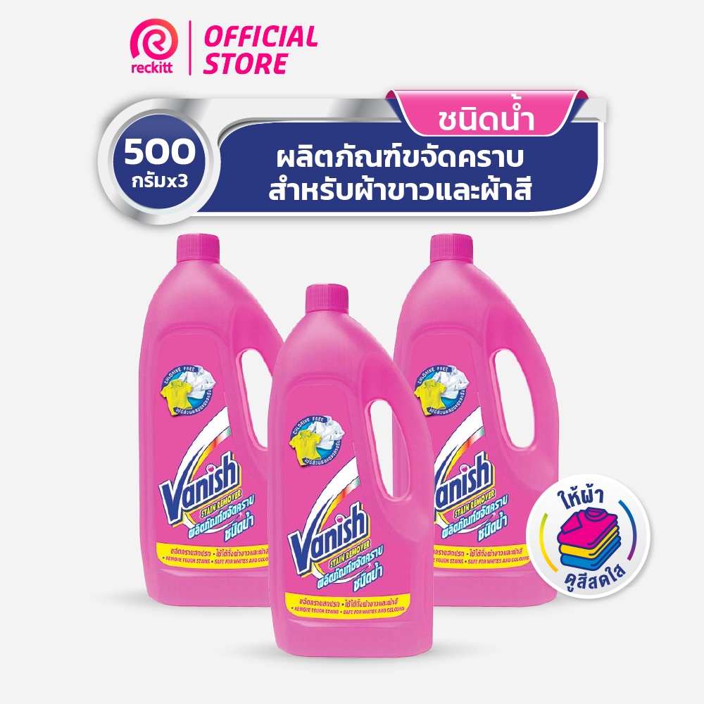 Vanish แวนิช ผลิตภัณฑ์ขจัดคราบ สำหรับผ้าขาวและผ้าสี ชนิดน้ำ 500 มล. (แพ็ค 3)