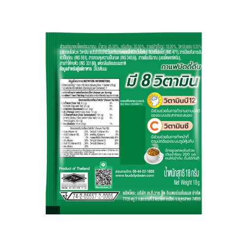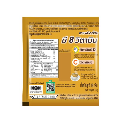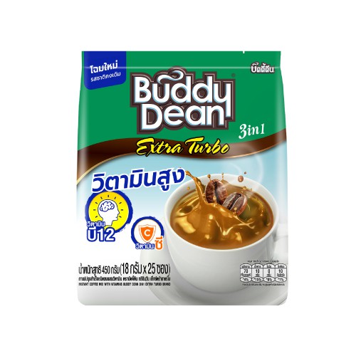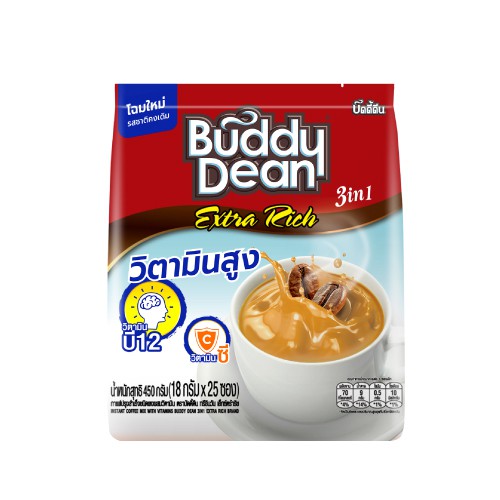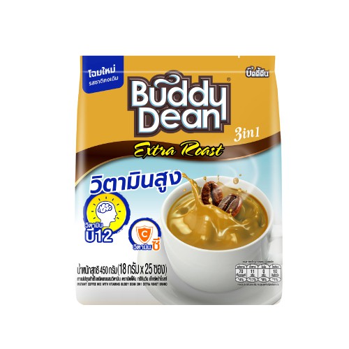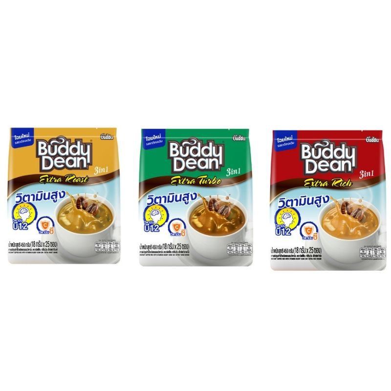 Buddy Dean 3in1 Extra Coffee กาแฟบัดดี้ดีน 3in1 เอ็กซ์ตร้า ผสมวิตามินสูง 8 ชนิด 18 กรัม X 25 ซอง (เลือกสูตร)