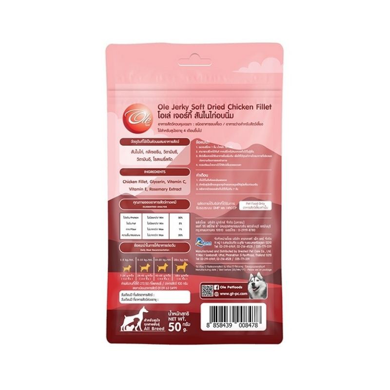 Ole Jerky โอเล่เจอกี้ สันในไก่อบ ขนาด 50 g (เลือกรสได้)