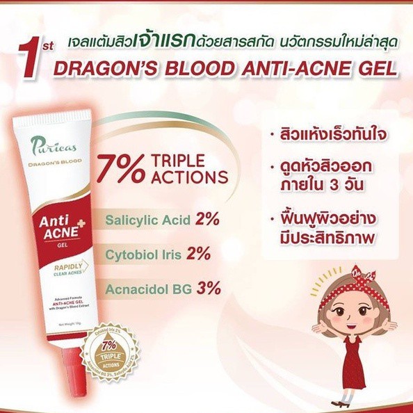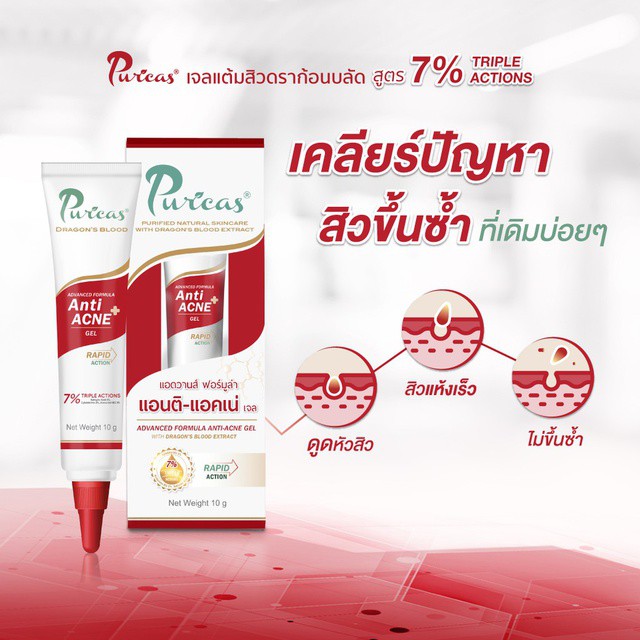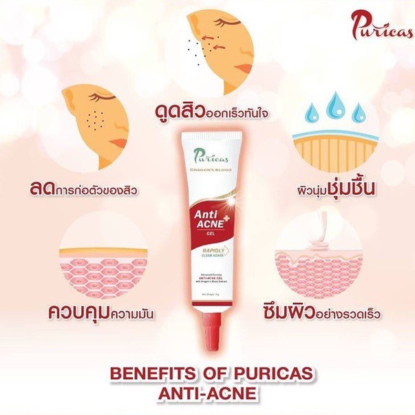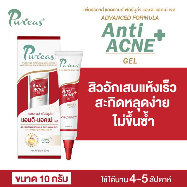 Puricas Advanced Formula Anti-Acne Gel 10 g. เพียวริก้าส์ เจลแต้มสิว ขนาด 10 กรัม