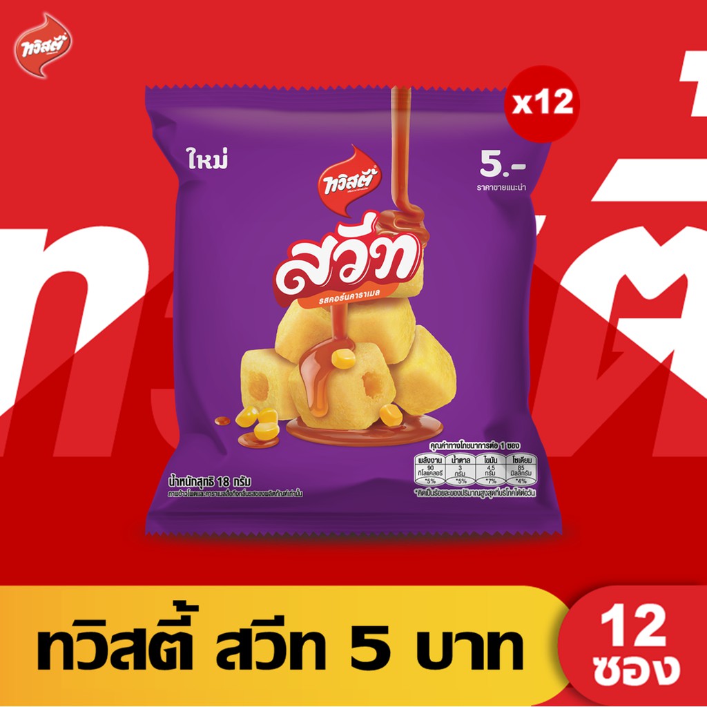 TWISTIES SWEET CORN CARAMEL ทวิสตี้ สวีท คอร์นคาราเมล 18กรัม (แพ็ค12)