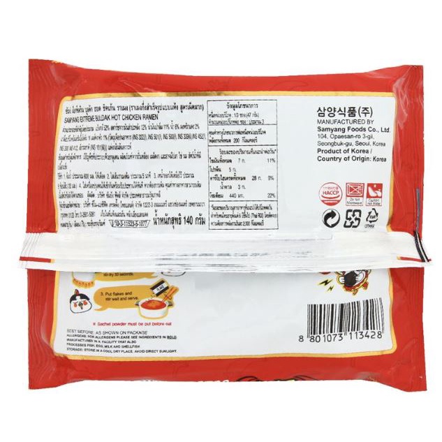 [แพ็ค x3] Samyang Buldak บะหมี่เกาหลี ซัมยังบูลดักราเมง ขนาด 140 กรัม (เลือกรสได้)