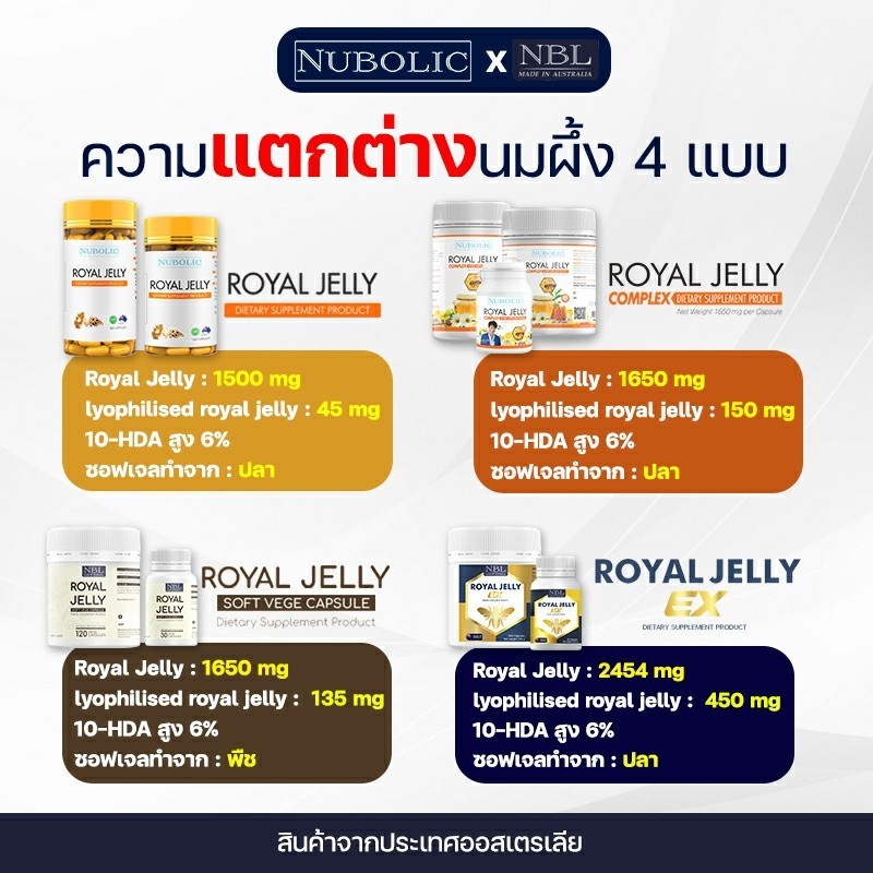 [ขายดี] Nubolic Royal Jelly นูโบลิก รอยัล เจลลี่ อาหารเสริม นมผึ้ง นำเข้าจากออสเตรเลีย 174 กรัม (120 แคปซูล)