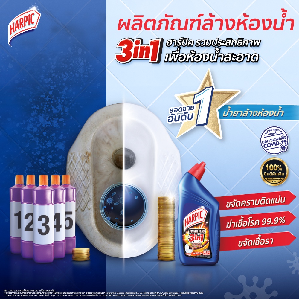 Harpic ฮาร์ปิค ผลิตภัณฑ์ทําความสะอาดห้องน้ำ เพาเวอร์ พลัส 450 มล. x3 แพ็ค