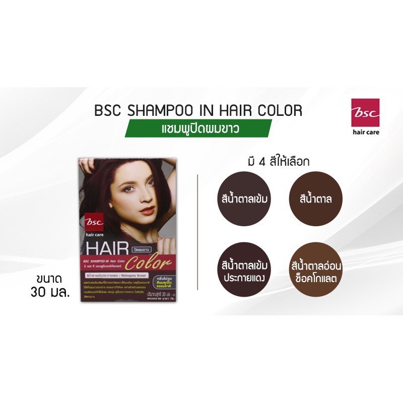 BSC แชมพูเปลี่ยนสีผม BSC SHAMPOO-IN Hair Color บีเอสซี แชมพู อินแฮร์คัลเลอร์ เปลี่ยนสีผม ปิดผมขาว 30ml. :