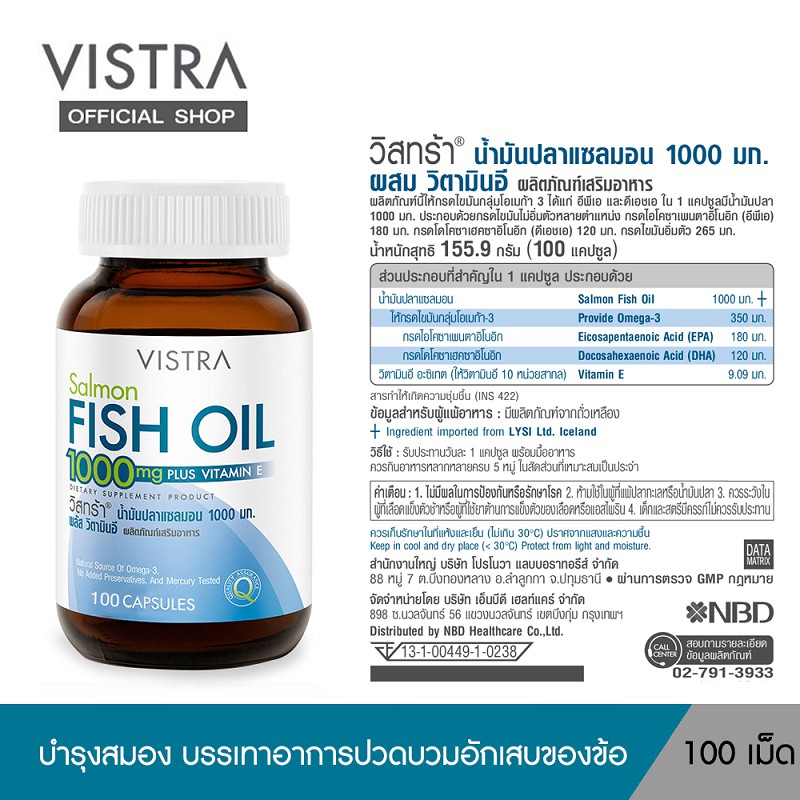 VISTRA Salmon Fish Oil วิสตร้า น้ำมันปลาเซลมอล (100 เม็ด) 145.91 กรัม