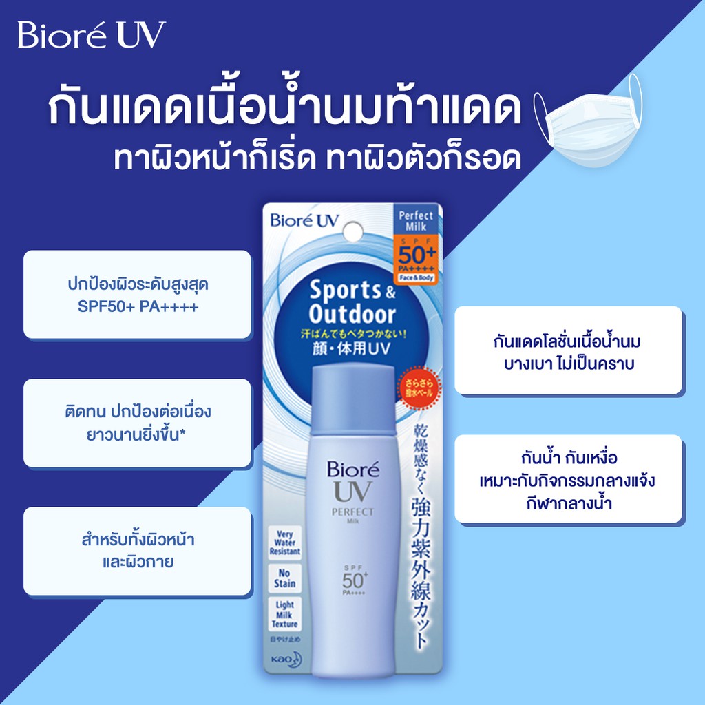 บิโอเร ยูวี เพอร์เฟค มิลค์ 40มล Biore UV Perfect Milk SPF50+ PA++++ 40ml กันแดด น้ำนม กันน้ำ กันเหงื่อ