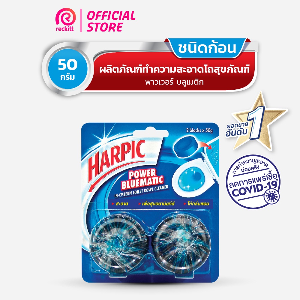 Harpic ฮาร์ปิค พาวเวอร์ บลูเมติก 50 กรัม ก้อนทำความสะอาดโถชักโครก (แพ็ค2 ก้อน)