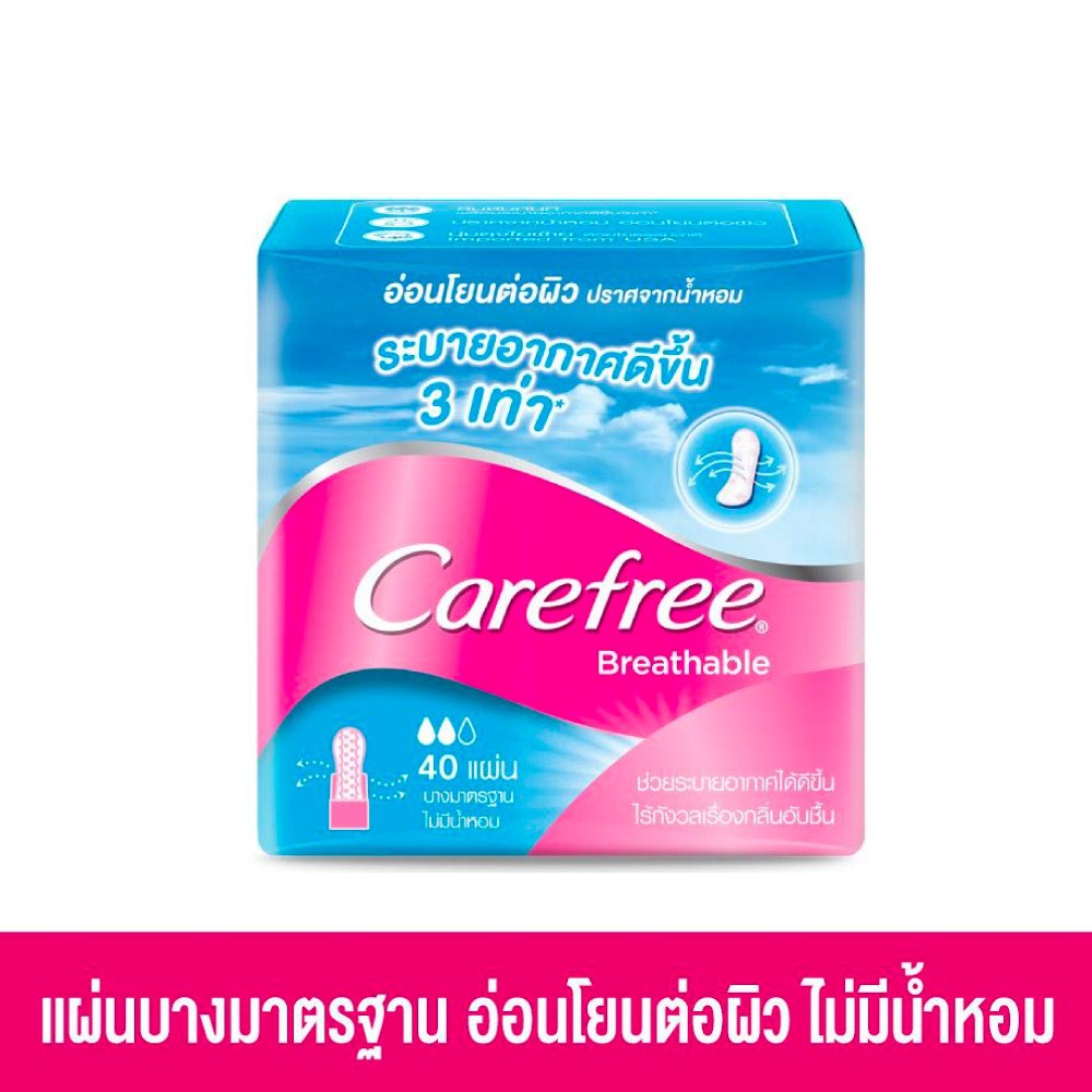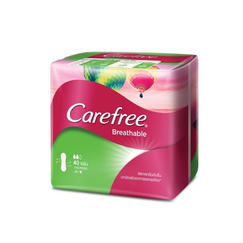 Carefree Panty liner Breathable 40 pcs แคร์ฟรี แผ่นอนามัย บรีทเอเบิ้ล 40 ชิ้น (เลือกสูตร)