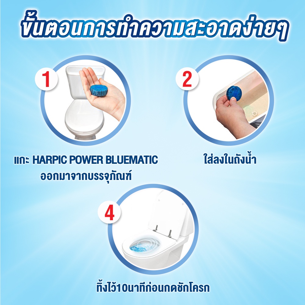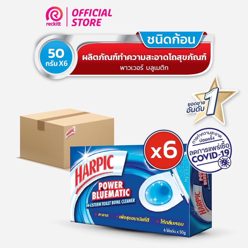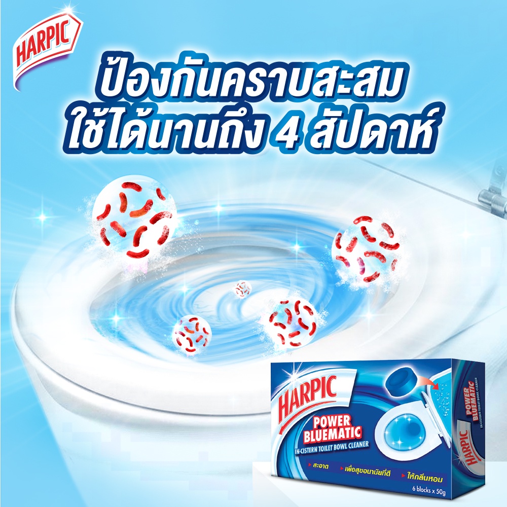 [ลดเพิ่ม 100.-] Harpic [แพ็ค 6] ฮาร์ปิค พาวเวอร์ บลูเมติก ก้อนทำความสะอาดโถชักโครก 50 กรัม (1 กล่องมี 6 ชิ้น)