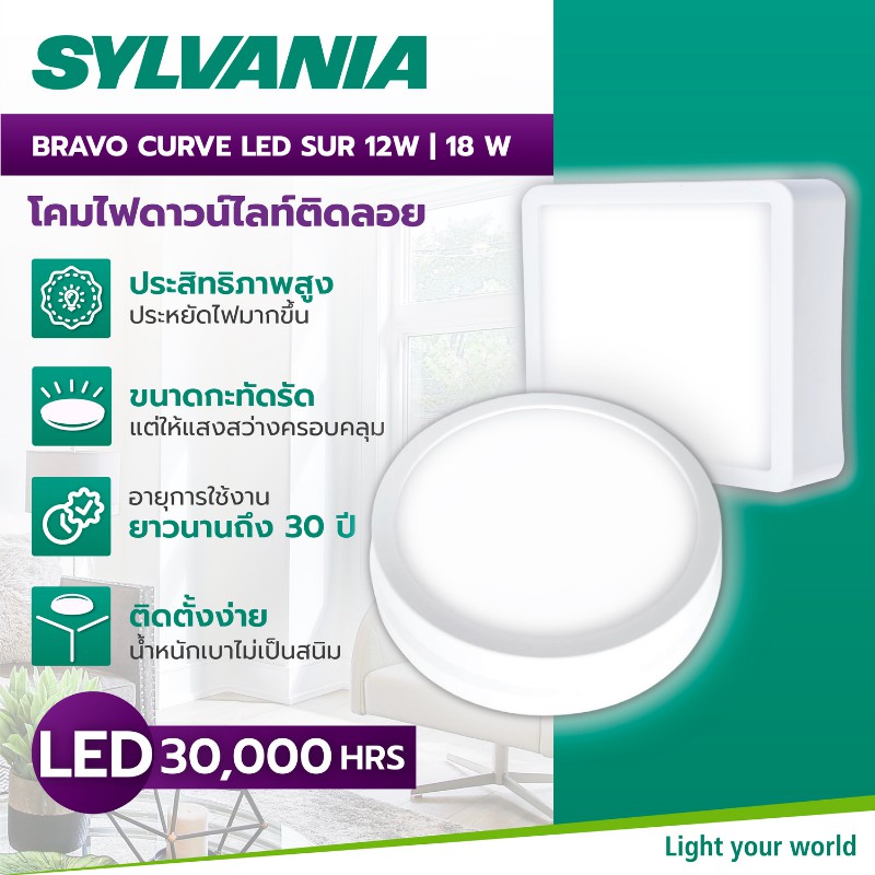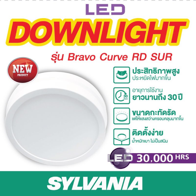 SYLVANIA โคมไฟดาวน์ไลท์ติดลอย รุ่น BRAVO CURVE LED RD SUR 12 วัตต์ (เลือกรุ่นได้)