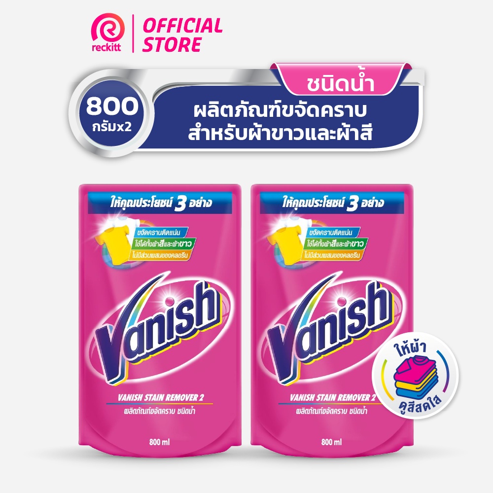 Vanish ผลิตภัณฑ์ขจัดคราบ สำหรับผ้าขาวและผ้าสี ชนิดน้ำ 800 มล. (แพ็คคู่)