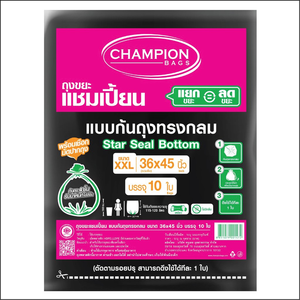 Champion bags ถุงขยะแชมเปี้ยน แบบก้นทรงกลม 36"x45" 10 ใบ