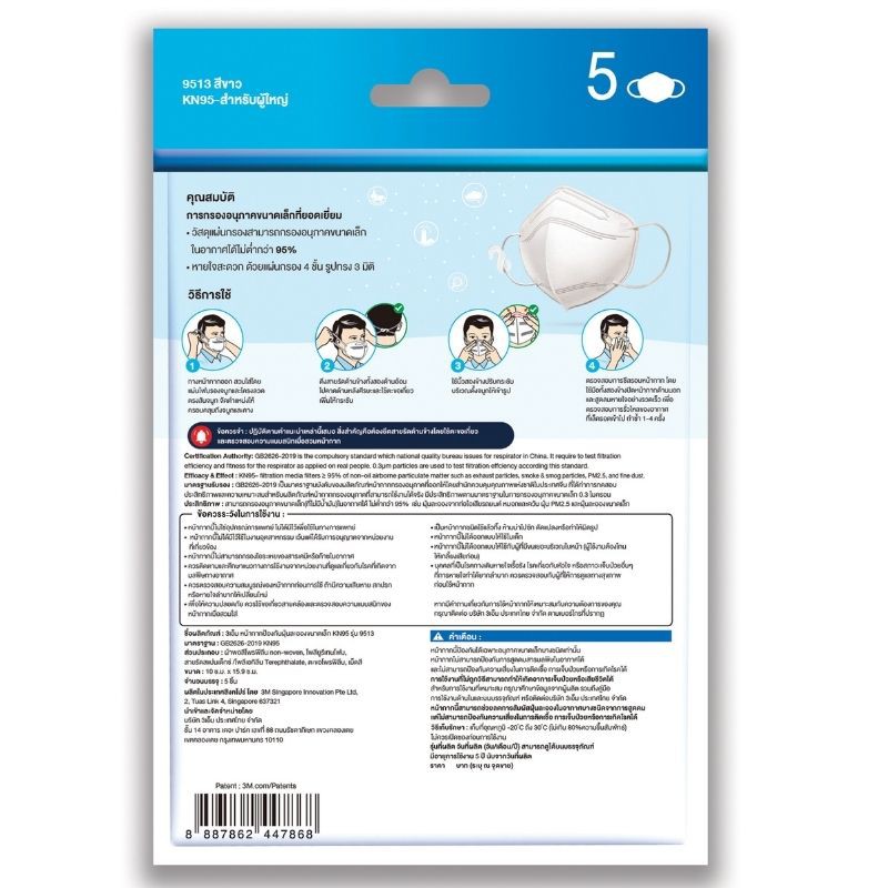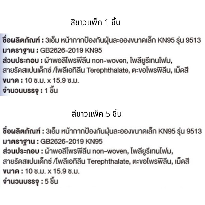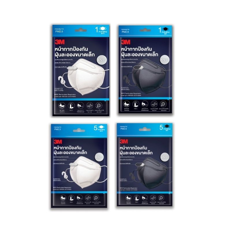 3M หน้ากากป้องกันฝุ่นละอองขนาดเล็ก กรอง PM2.5 มาตรฐาน KN95 (เลือกสีและจำนวนได้)