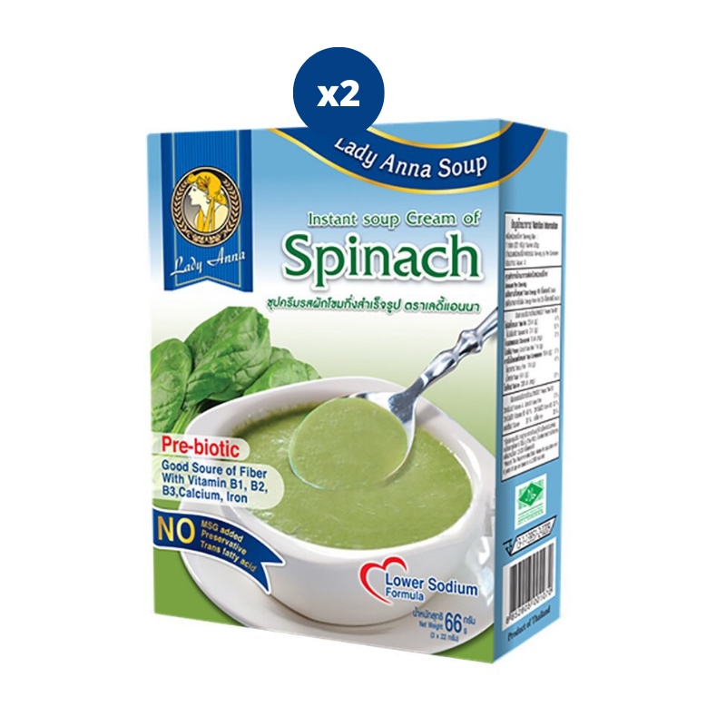 Lady Anna ซุปครีมกึ่งสำเร็จรูป รสผักโขม สูตรลดเกลือ 66g. x2