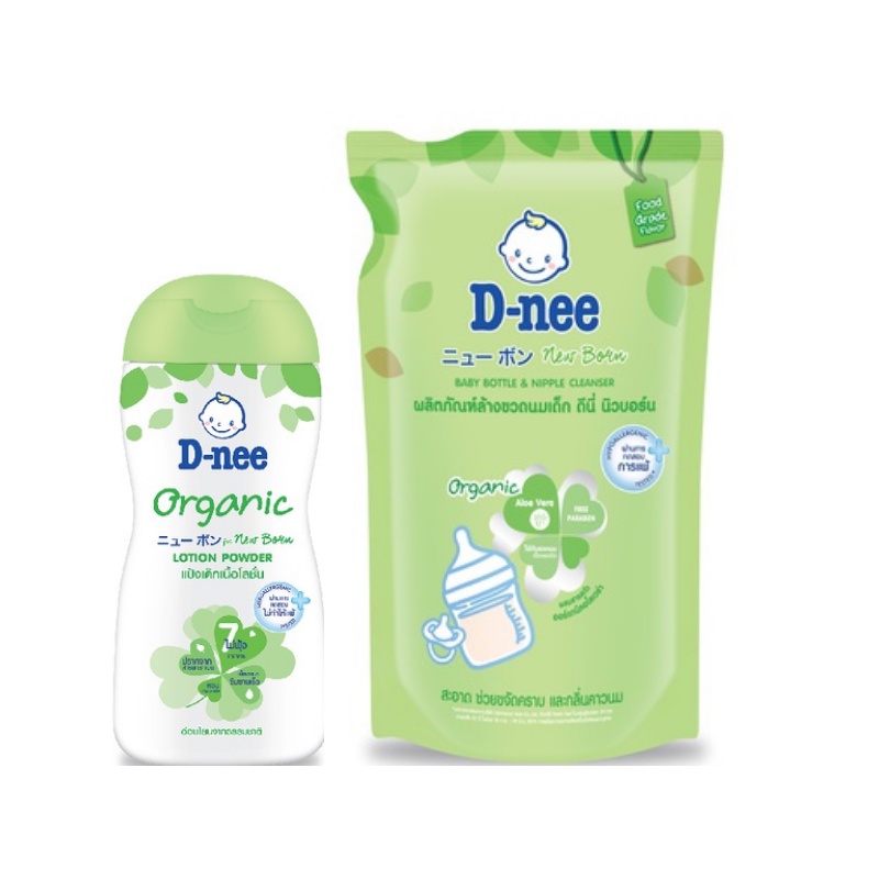 เซ็ทใหม่! D-nee ดีนี่ เพียว แป้งเด็กดีนี่เนื้อโลชั่น ออร์แกนิค 180มล.+D-nee น้ำยาล้างขวดนมดีนี่ ออร์แกนิค ถุงเติม 600มล.