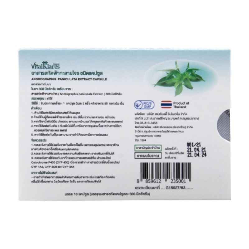 Vitalklares ยาสารสกัดฟ้าทะลายโจรชนิดแคปซูล 1 แผง 10 เม็ด ไวทัลแคลร์