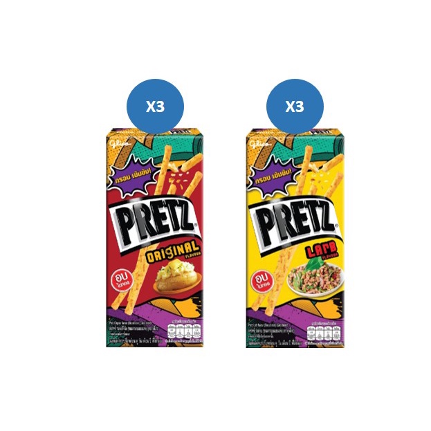 (แพค x 6) Pretz เพรทซ์ ขนมกรอบแบบแท่ง รสออริจินัล x 3 + รสลาบ x 3