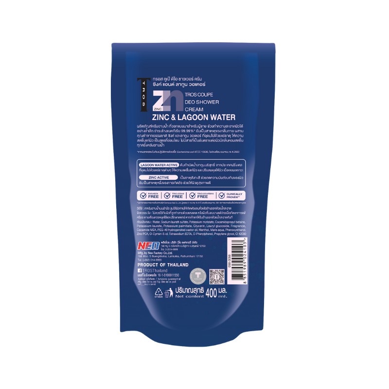 Tros ทรอส คูเป้ ดิโอ้ ชาวเวอร์ ครีม ซิงค์ แอนด์ ลากูล วอเตอร์ ขนาด 400 มล. ถุงเติม