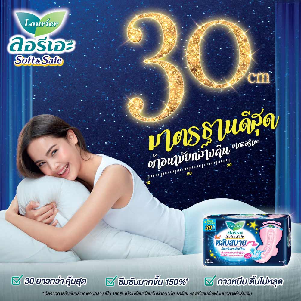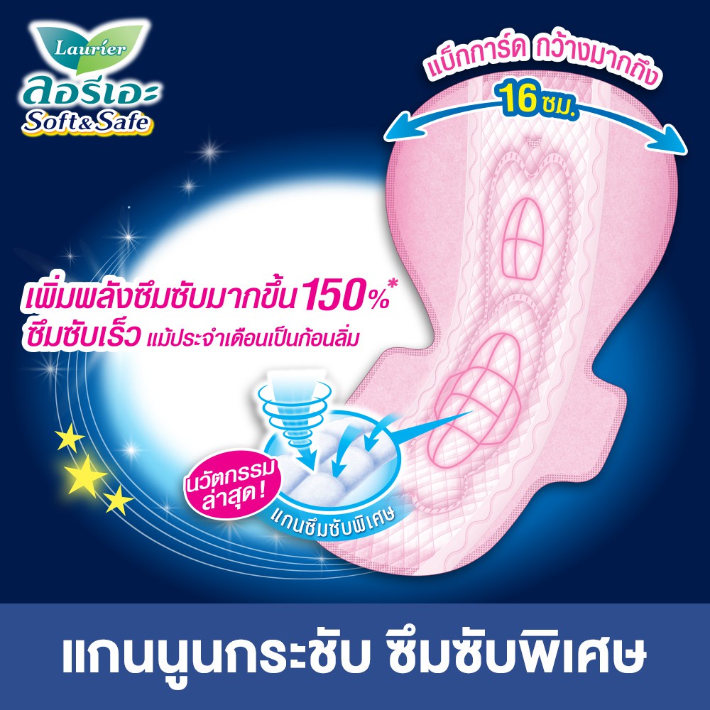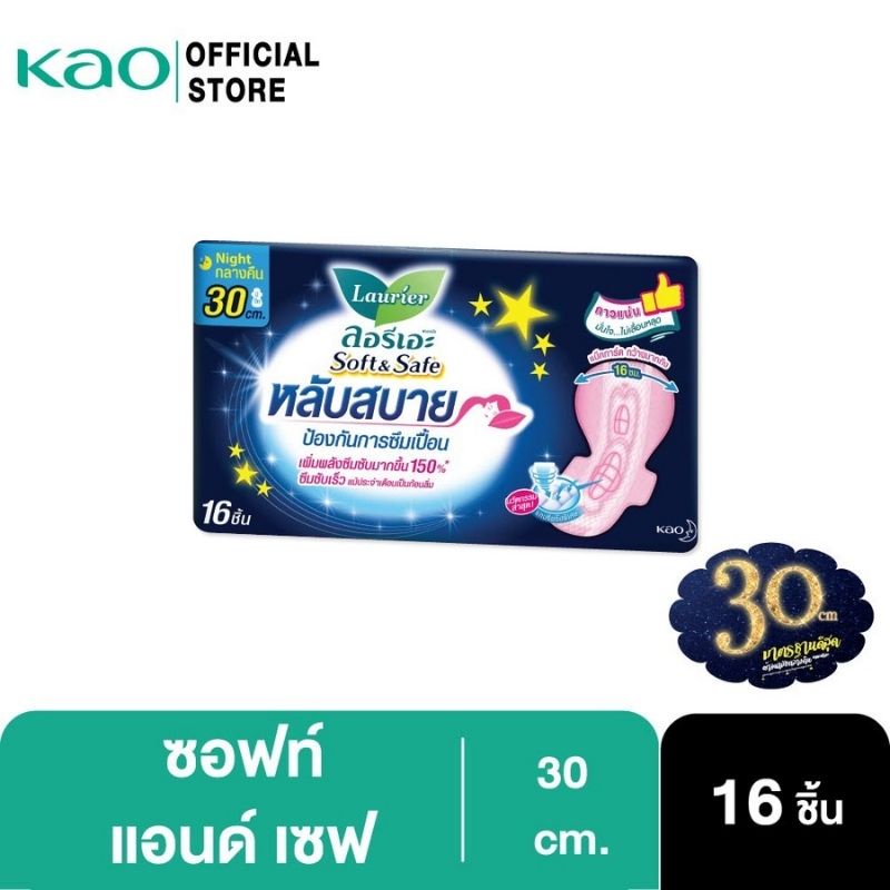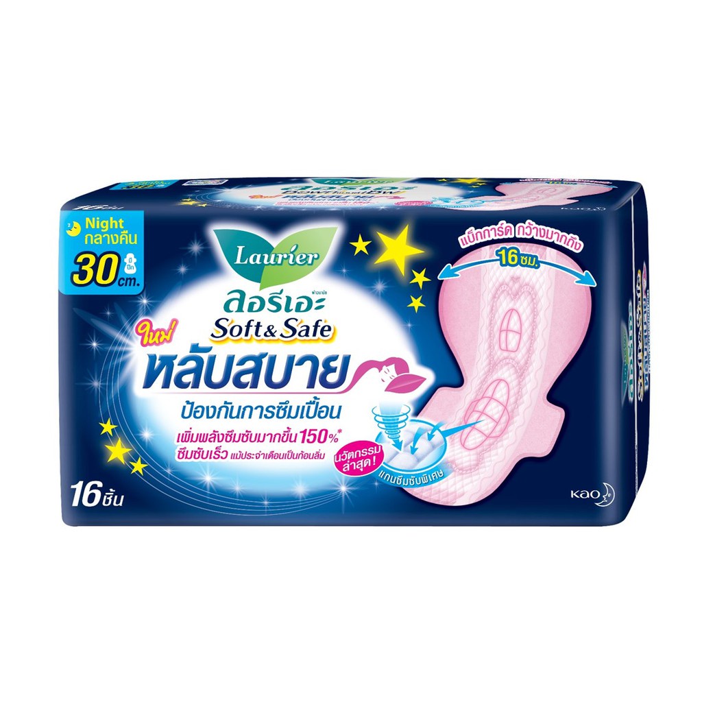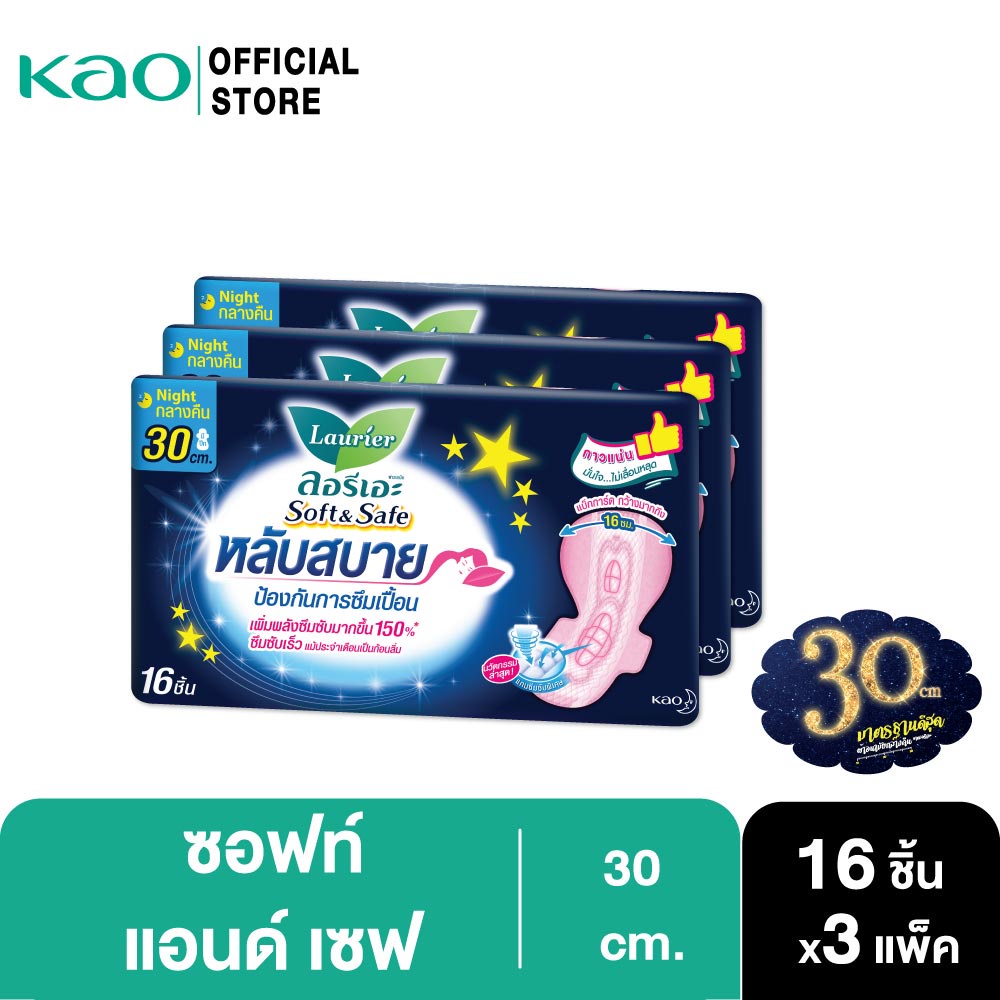 [แพ็ค3] ลอรีเอะ ซอฟท์แอนด์เซฟกลางคืน30ซม.16ชิ้น Laurier Soft&Safe ผ้าอนามัย,ยกแพ็ค,ซึมซับดี,สำหรับกลางคืน