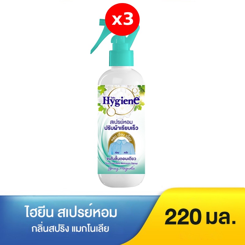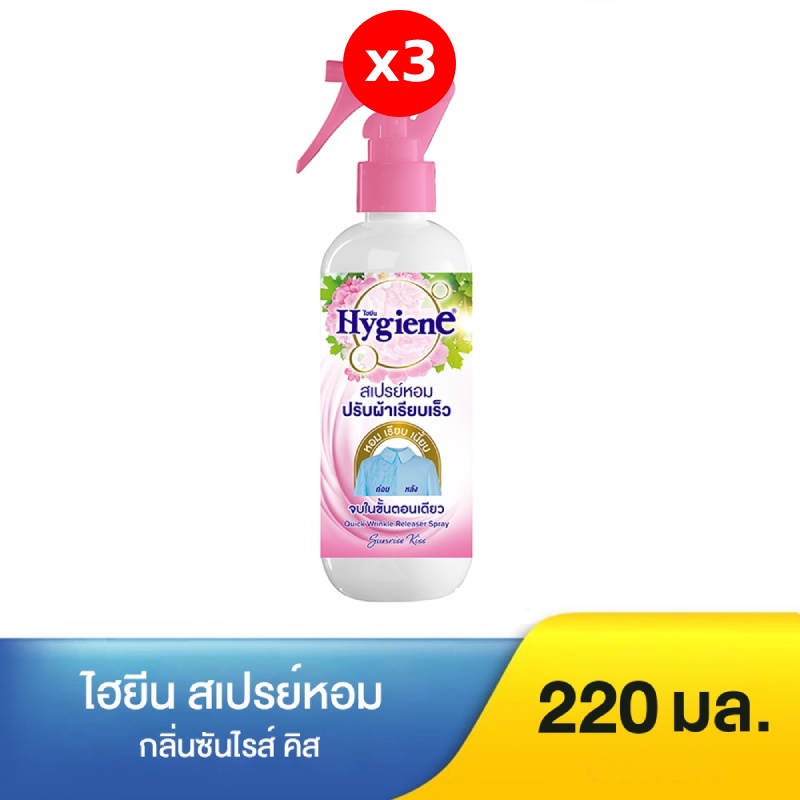 HYGIENE ไฮยีน สเปรย์หอมเรียบ หัวฉีด 220 มล. X 3 ขวด (เลือกสูตรได้)
