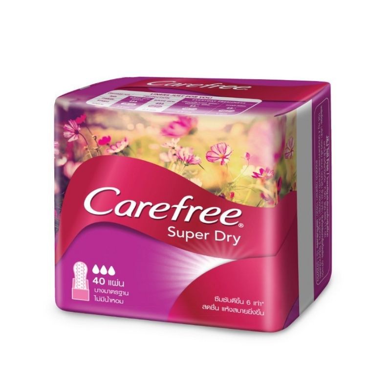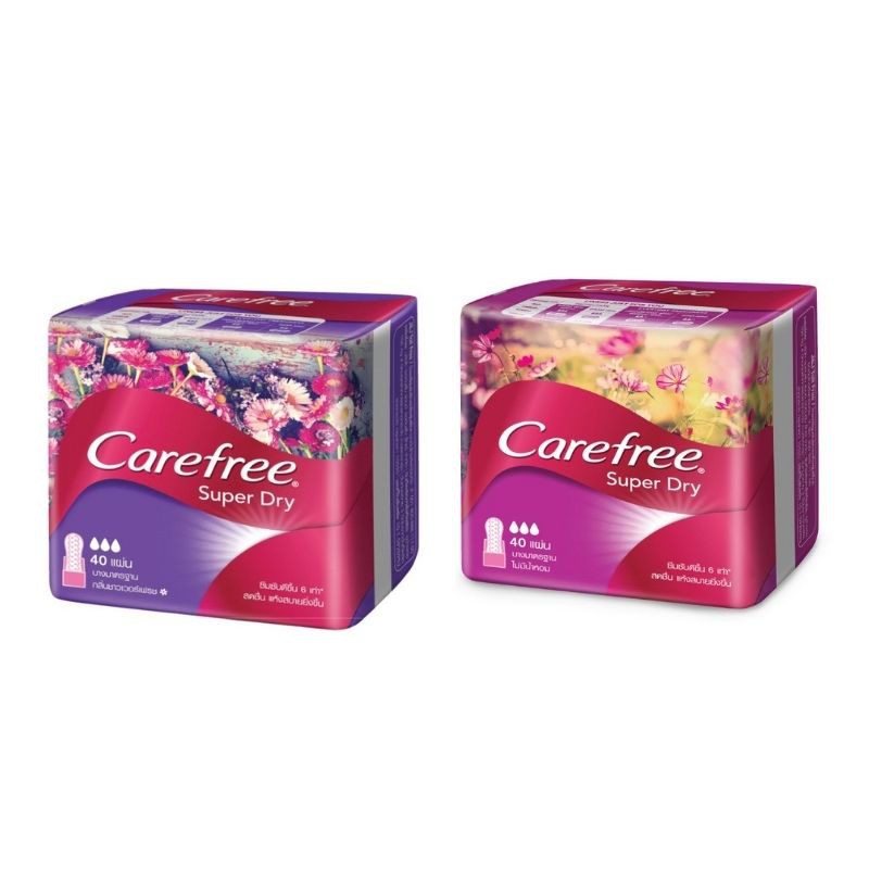 Carefree Panty Liner Super Dry 40 pcs แคร์ฟรี ผ้าอนามัย ซุปเปอร์ดราย 40 ชื้น (เลือกสูตร)