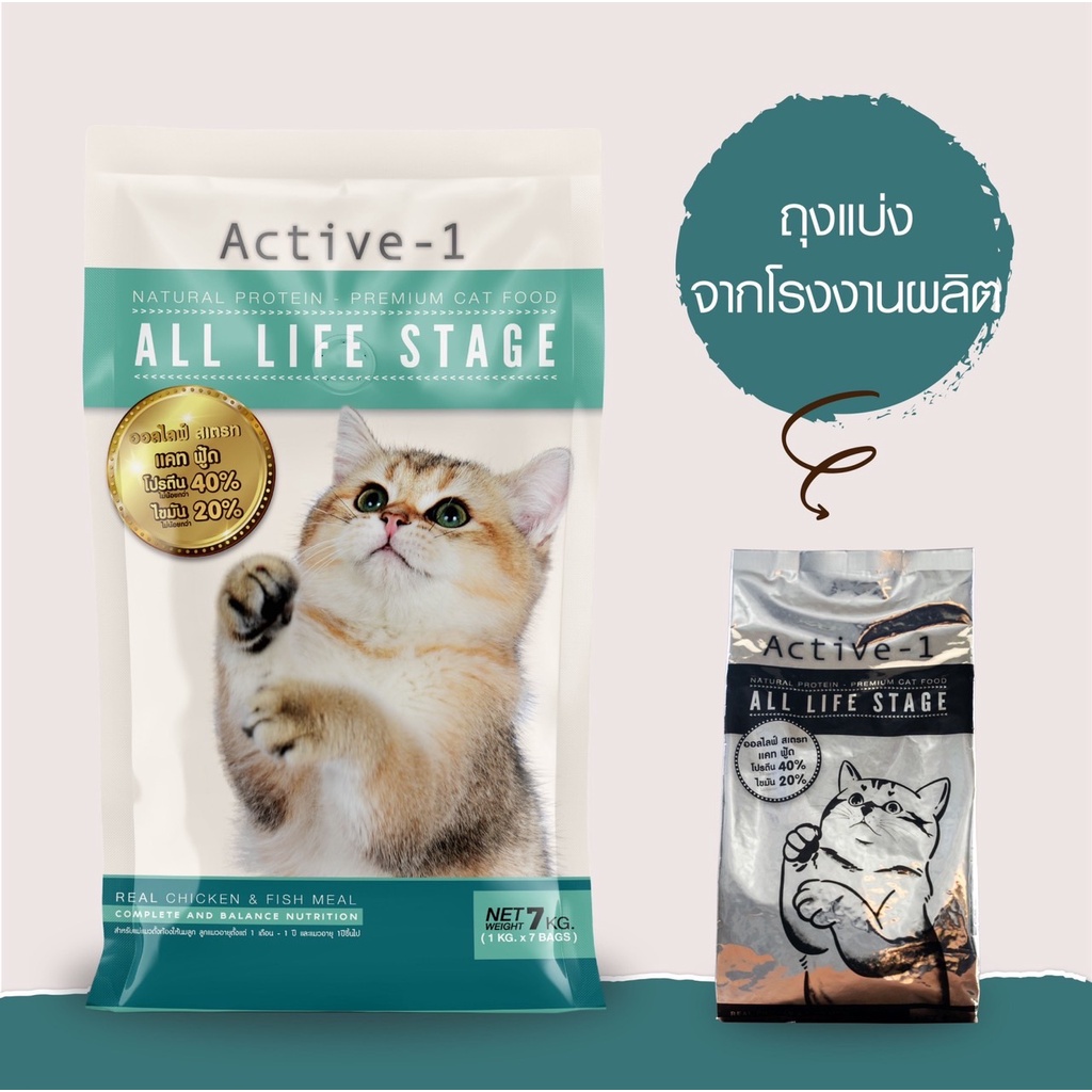 Active-1 แอคทีฟวัน อาหารแมว สูตร All Life Stage แบบแบ่งขาย ขนาด 1 กก.