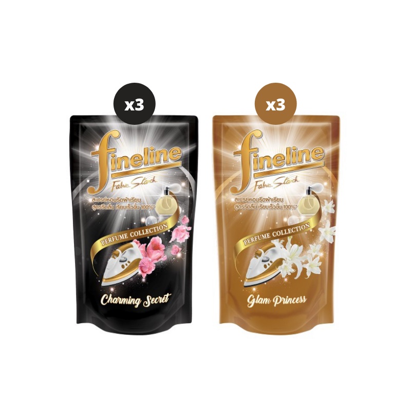 [ใหม่!แพ็ค x6] Fineline ไฟน์ไลน์ รีดผ้าเรียบ เพอร์ฟูมคอลเลคชั่น 450 มล. ถุงรีฟิล สีดำ + สีทอง