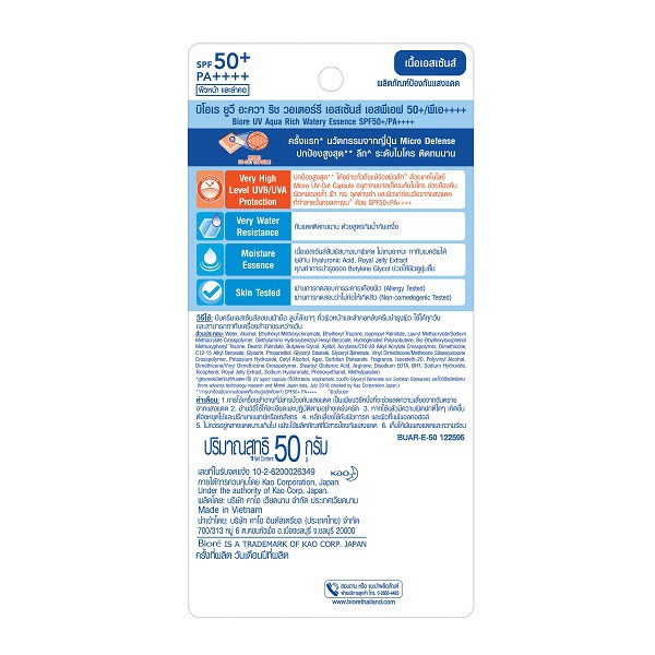 บิโอเร ยูวี อะควา ริช วอเตอร์รี่ เอสเซ้นส์ กันแดด 50 ก. Biore UV Aqua Rich Watery Essence SPF50+PA++++50g (ครีมกันแดด)