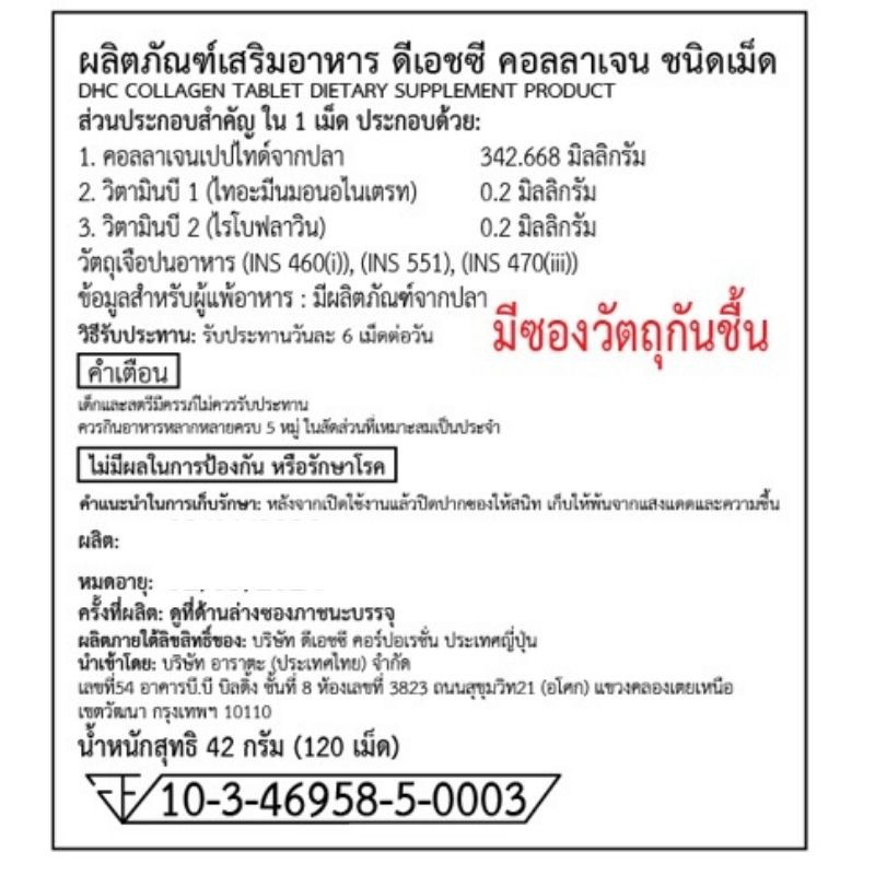 DHC ผลิตภัณฑ์เสริมอาหาร ดีเอชซี คอลลาเจน ชนิดเม็ด (120 เม็ด) 42กรัม