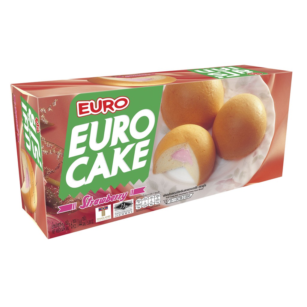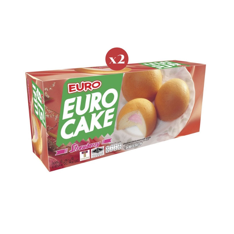 Euro ฟัฟเค้กสอดไส้ ตรายูโร่ 144g ครีมสตรอเบอร์รี่ (Pack x2)