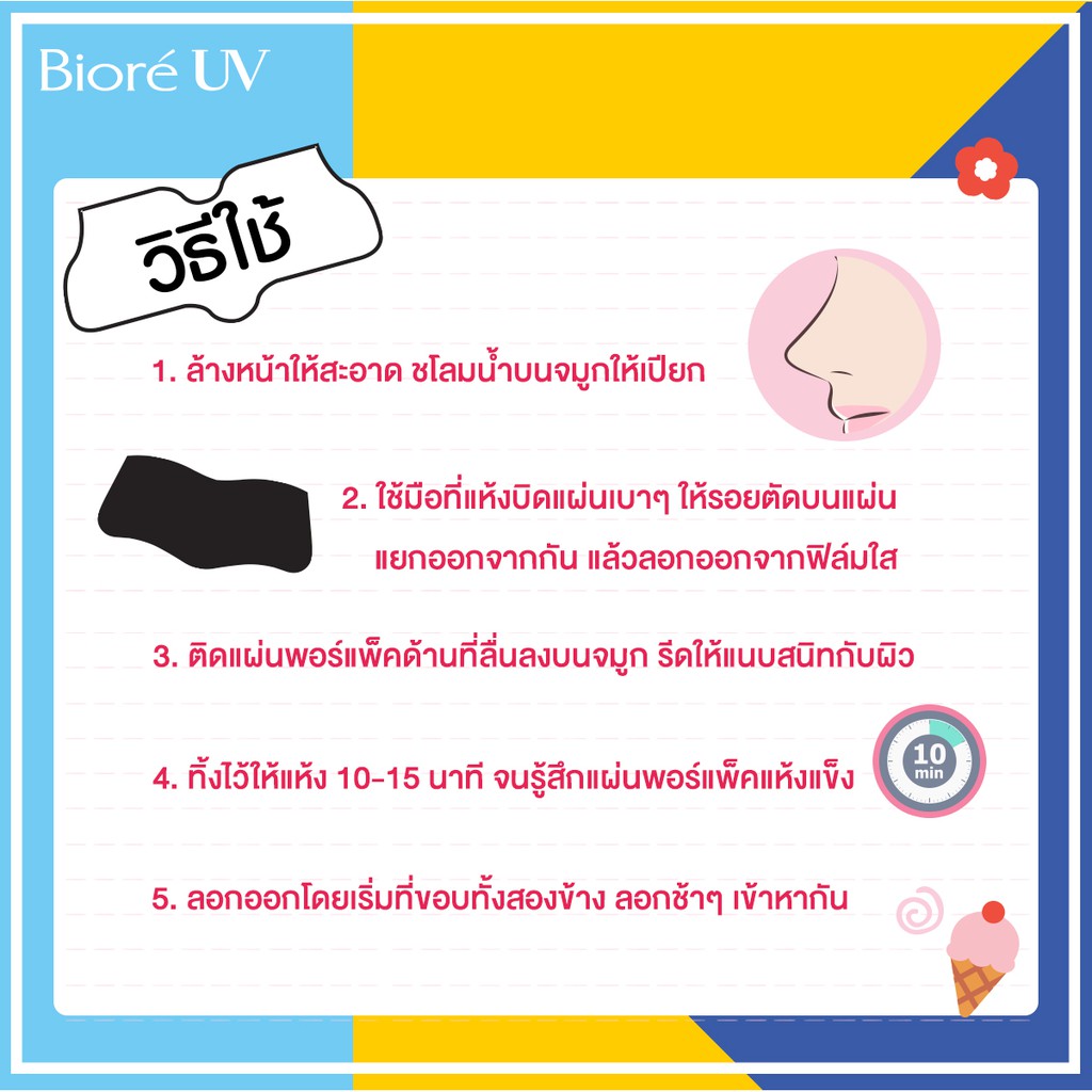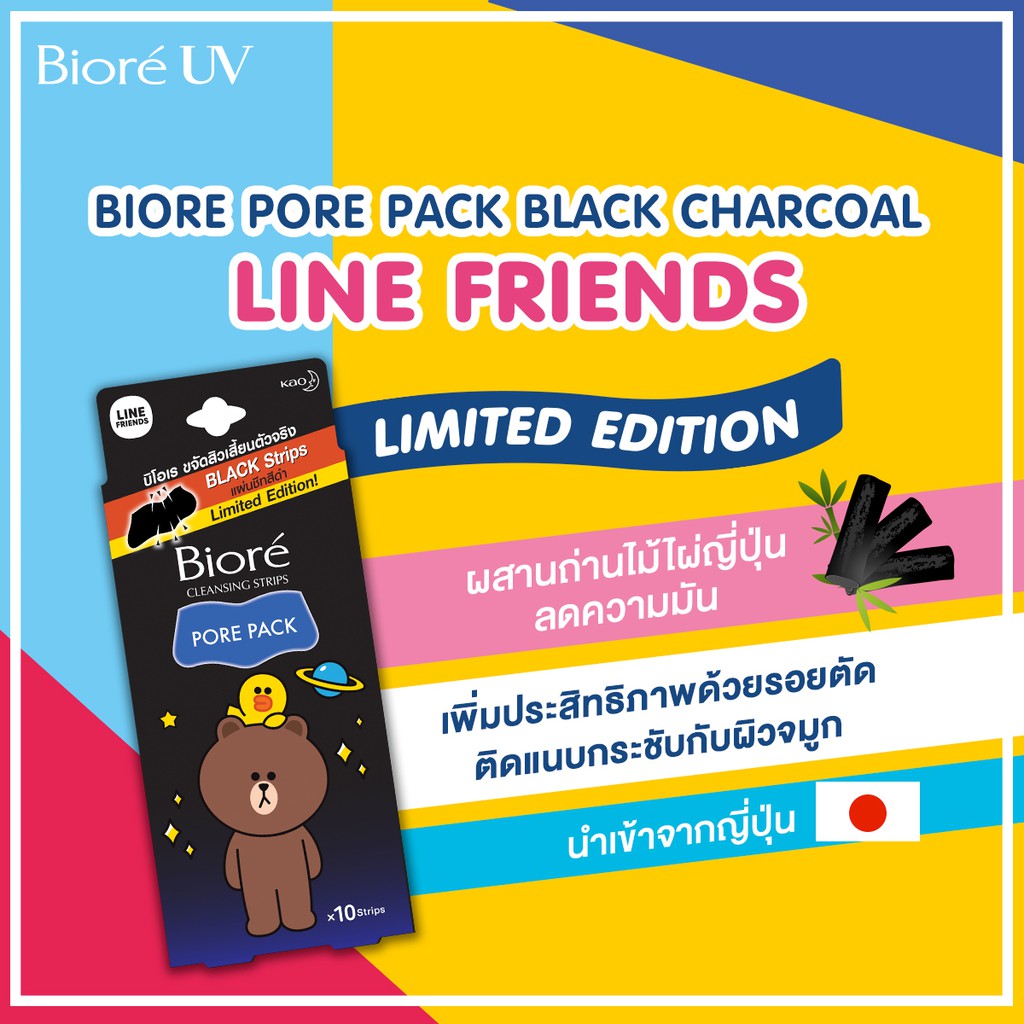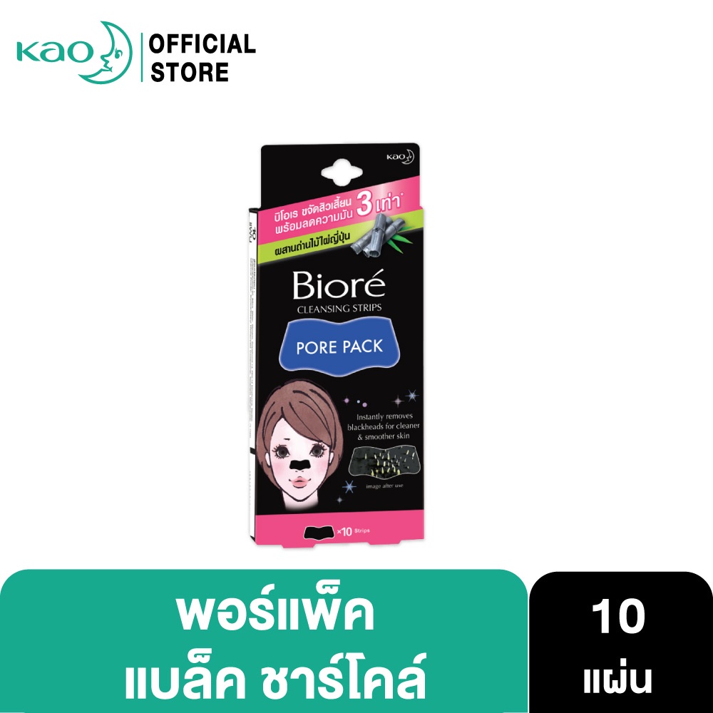 บิโอเร พอร์แพ็ค แบล็ค ชาร์โคล 10ชิ้น Biore Pore Pack Black Charcoal 10pcs แผ่นลอกสิวเสี้ยน ชาร์โคล สีดำ