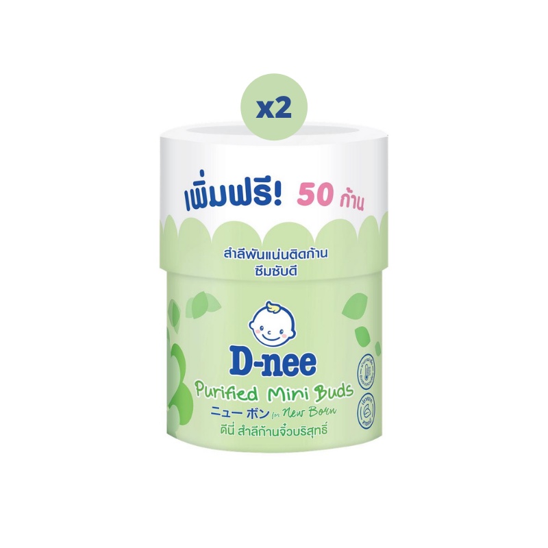 D-nee สำลีก้านเล็ก สำหรับเด็ก 150 ก้าน กระปุก x2