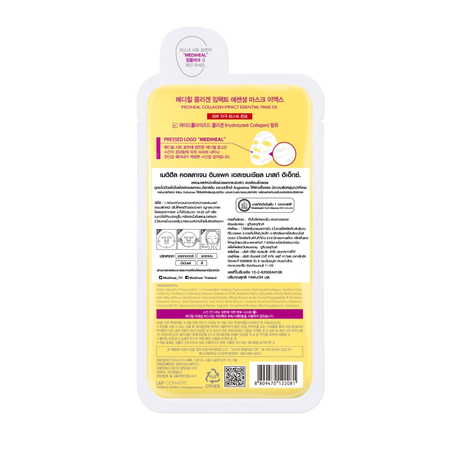 Mediheal Essential Mask EX. เมดิฮีล เอสเซนเชี่ยล มาสก์ อีเอ็กซ์ แผ่นมาสก์หน้า 1 แผ่น (เลือกสูตร)